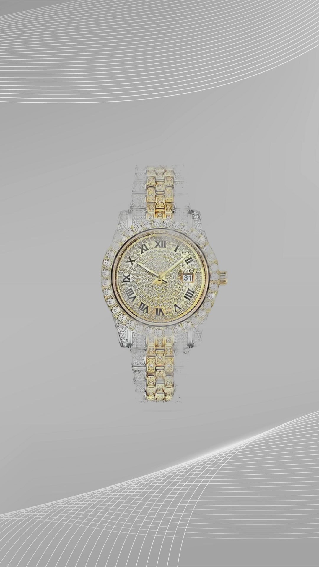 New Popular Quartz Fashion Luxury Rhinestone Men's Watch Trendy Alloy Diamond Calendar Business Men's Watch
